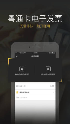 【粤通卡服务】在线充值粤通卡,实时查询高速通行账单,提供粤通卡电子发票、粤通卡营业厅预约服务;推出粤通卡高速积分体系,充值、开发票、查询账单等均可领取积分。