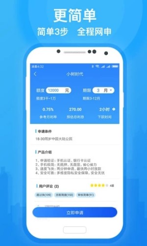 4.操作简单:手机填写个人资料,申请贷款,足不出户,轻松贷款。
