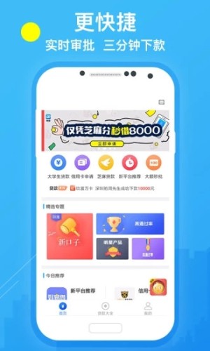 1.放款快:1分钟快速申请,审核通过当天放款,借贷就这么容易。