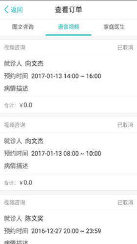3、查看订单:医生可查看所有收到的订单,包含待支付订单、已支付订单、已完成订单和已取消订单。