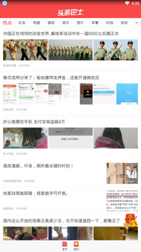 头条巴士,边看新闻边赚钱。一款为广大用户提供全球热点资讯的信息平台,集合涵盖头条资讯、生活百科、娱乐、军事等在内的各类资讯,全方位多角度为用户提供优质高效服务。除新闻资讯外,头条巴士还有各类趣味任务,看资讯送金币,金币兑现当钱花,让阅读不仅是消遣,更能赚钱。