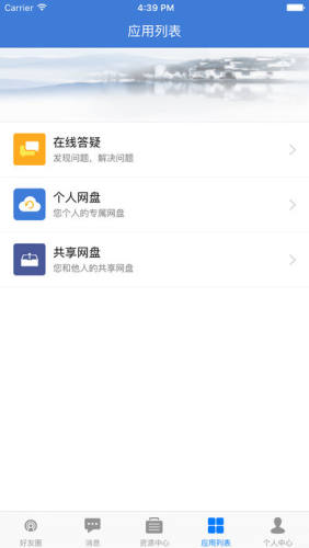 应用:集成了平台常用的手机端各类应用,比如网盘、在线答疑,以及其他丰富的第三方应用。