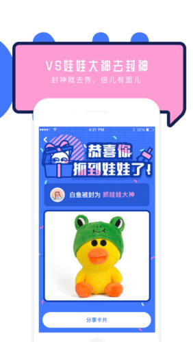 相比线下抓娃娃更热闹,更有意思。抓娃娃获得封号后可以发到微信朋友圈,倍儿有面儿