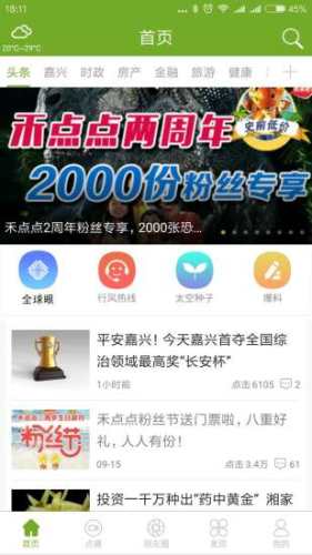 禾点点是一款集新闻资讯、社交娱乐、生活服务为一体手机应用,点亮智慧嘉兴、我的嘉兴。为大家带来丰富的嘉兴本地新闻直播内容,感兴趣的朋友,赶快来下载体验吧!