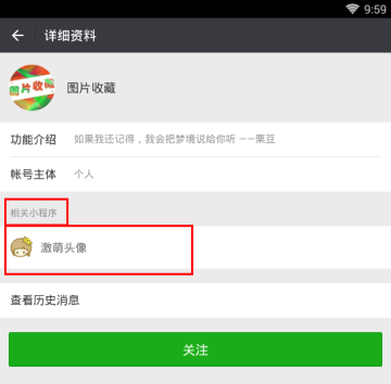 注意:暂提供“图片收藏”官方微信公众号,可在公众号中,进入小程序