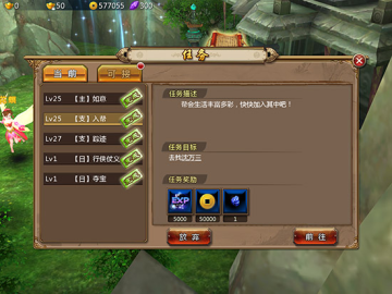 从1-29级有完善的主线任务供玩家升级,29级之后每十级会有有几个主线任务,主线任务除了有丰富的经验、金币奖励外,还有额外的各种道具,比如紫装、装备等奖励。