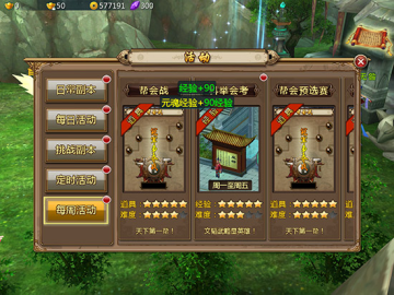 副本、装备强化、培养、挑战等等。每个任务完成有一定的金币、经验及帮贡奖励。