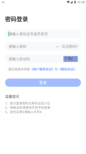 (账号为身份证,密码默认身份证后六位,身份证带X请输入大写X,军官证、港澳台通行证以及外籍人员,账号为手机号码,密码默认666888)