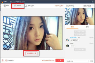 (2) 点击视频窗口下的“使用摄像头上课”按钮,确认后,上课模式即可切换到摄像头上课模式。