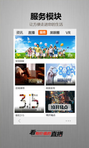 【服务模块】:集中四川广播电视台现有社会资源,为您搭建医疗、法律援助、运动健康等服务通道,解读民声,让方便走进您的生活。