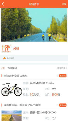 运动单车共享平台 车主自行发布车辆并设定租金和押金 骑友通过芝麻信用认证后可租到心仪车辆 骑友可发布骑行攻略获得超额回报 推荐注册可永久获得20%-50%佣金分成