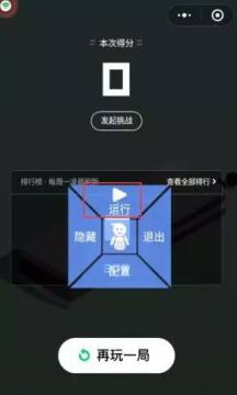 3、打开微信进入跳一跳,自杀一局后来到挑战页面,再打开黑松鼠跳一跳悬浮窗,点击“运行”,就OK啦~