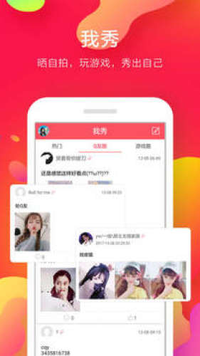 我秀社区为大家提供一个不一样的00后交友软件,处Q有,晒自拍,还是农药荣耀开黑。都能在我秀社区满足你,让你结交更多的个性达人!
