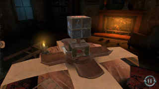 我们用手指滑动屏幕可以旋转视角,360度查看这个盒子,在桌子周围有一把小刀、一个蜡烛、一个密码盒。