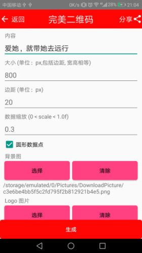 生成的二维码直接可以在相册中找到,而且生成的时候会显示保存的路径