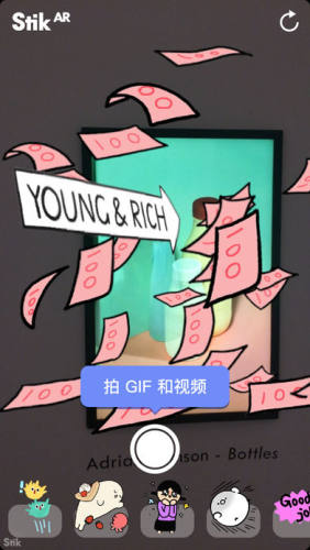 全新推出 AR 相机!运用苹果尖端的 ARKit 技术,让贴纸进入现实,就像真的浮在在空间中。