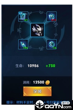 消耗突破材料,来完成对装备的突破,提升装备品质,装备有白、绿、蓝、蓝+1、蓝+2等多个品阶,品阶影响装备的外观、属性和等级上限。