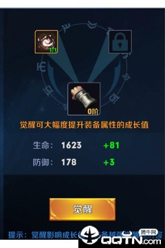 4、觉醒:改变装备前缀名字,普通装备获得百分比属性加成,特饰可激活技能