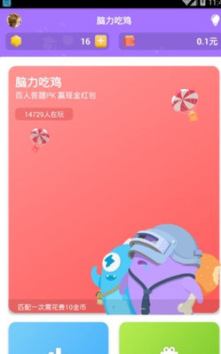 点击脑力吃鸡模块进入答题,每局比赛百人开局,匹配人满后便开始答题PK。