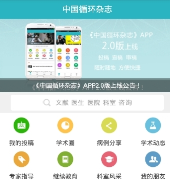 安装中国循环app后,可专享“免费下载期刊论文、继续教育申请学分、名医专家指导、论文全程跟踪”服务;