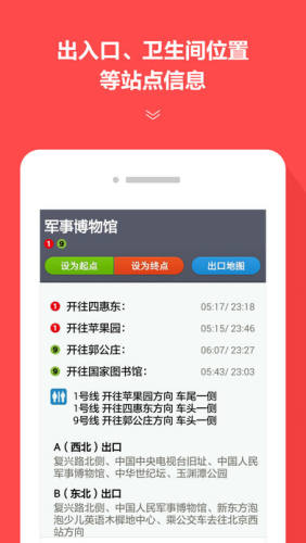 - 专业运维团队更新地铁信息,包括线路图,站点信息、出口信息、卫生间信息、首末车时间、出口地图等;