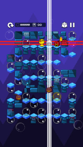 - 简单的闯关规则:只要踩过三个发光的彩色泡泡就可以过关
