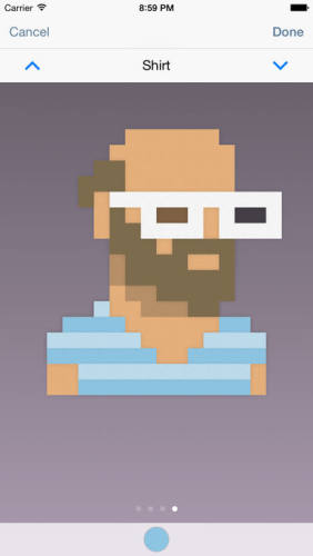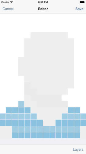 完整版的 Bitface,你还可以自己「画」这些元素,操作起来也没有什么难度,填充像素格子就行了,两根手指操作可以放大画面哦!应用还提供了丰富的色库供你选择。