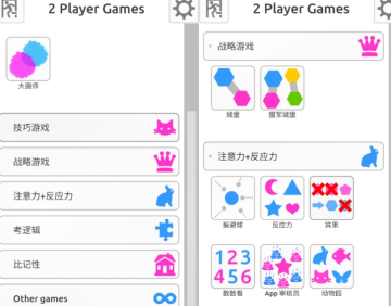 游戏被分成很多个大类,有技巧性的、有策略性的、有考验你的注意力反应能力的、也有考逻辑的比记忆的。游戏种类可以说是相当丰富了,每个类下又有二到九个游戏。如果你有点选择困难症你还是点随机按钮吧。