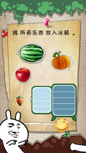 将所有东西放入冰箱,包括这句话和所有水果都拖动到冰箱里面即可过关。