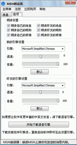 一款MSN朗读软件,可以即时朗读MSN上接收和发送的消息内容。让您的MSN会说话!现在您可以边听声音边聊天了,真得劲吧!一起体验非同寻常的聊天感受。就用MSN朗读器。本软件全面支持Windows Xp,Windows Vista系统,欢迎您选择使用