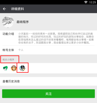 以上提供的是“最晓程序”微信公众号,大家可以通过详细资料界面,进入“成语猜猜看”微信小程序