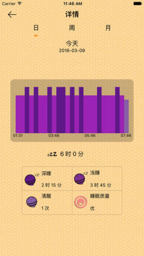 2、能监测睡眠,统计分析睡眠睡眠质量;