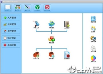 系统设置:商品管理、供货商、仓库设置、部门管理、权限分配、系统备份、数据清理、帐套管理等。