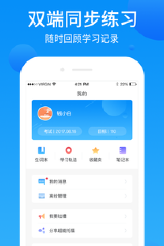 电脑&APP全打通,一键同步学习记录,生词、错题随时回顾。明细的错题记录反馈功能,帮您了解自己的薄弱点,错题可分类重练,各个击破。