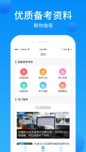 托福超能学iOS版,一款超给力的托福高分备考学习软件。平台汇集练习、模考、托福资料于一身,海量最新最全的历年真题题库,众多名师在线解读,帮助每位托福考生轻松备考,获取高分!