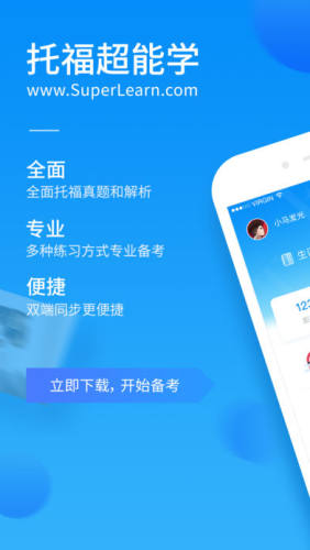 托福超能学是超能学旗下的托福练习APP,汇聚TPO练习、模考、托福资料于一身。内置中英翻译、精听精读、生词、笔记等多种科学备考工具,我们致力于打造科学高效、体验最佳的托福练习APP。