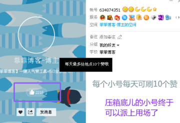 多年来一直压箱底儿的QQ小号存货终于可以拿出来派上用场啦!10个小号每天点赞100次~
