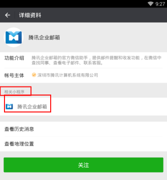 注意:暂提供“腾讯企业邮箱”官方微信公众号,可在公众号中,进入小程序