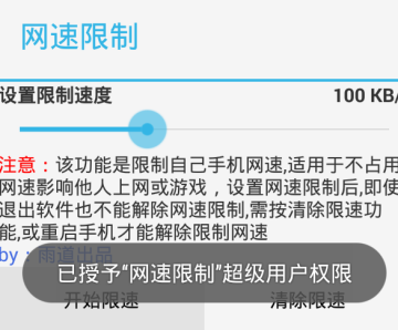 限速完即可退出软件,你可以点击清除限速或重启手机来解除限速,软件需要root权限,没有权限请百度手机型号+root