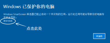 在win10中,若提示无法打开,请点击“更多信息”,选择“仍要运行”