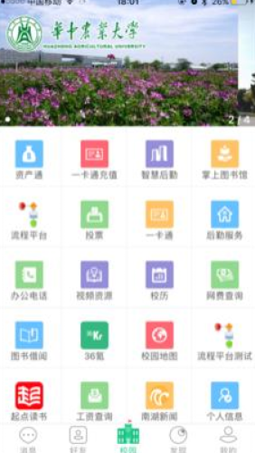 掌上华农app是华中农业大学移动校园生活服务应用,软件可以为广大师生提供学习,生活,社交等诸多方面的服务,可以帮助用户在华中农业大学更轻松生活学习。