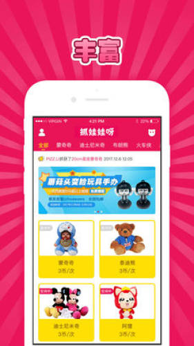 娃娃机娃娃种类繁多,每周都有新娃娃,游戏操作反馈好,真正不限次数玩;