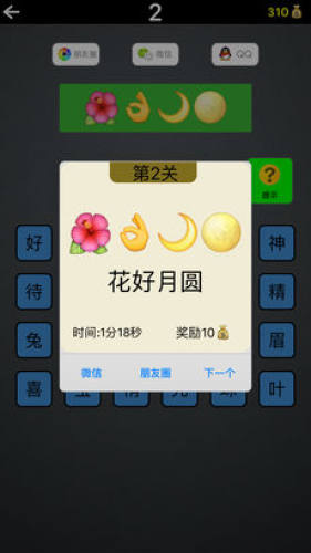 Emoji(表情符号)是人类交流方式一大鼓舞人心的进化,也是一门正蓬勃发展的语言,不久它就能成为足以和媲美英语的全球语言;我们为这门新生表情语言,特开发一款表情猜成语文字益智休闲游戏,通过表情符号来猜成语;中华文化,源远流长,成语更是中华文明的精髓,你虽才高八斗,出口成章,当我们精心挑选的表情组合为成语,无论是简单的勾勒还是生动的表情,都会让你猜对之后精神气爽,开怀一笑,恍然大悟.你可以分享给好友一起体验游戏的乐趣.赶快来试试吧