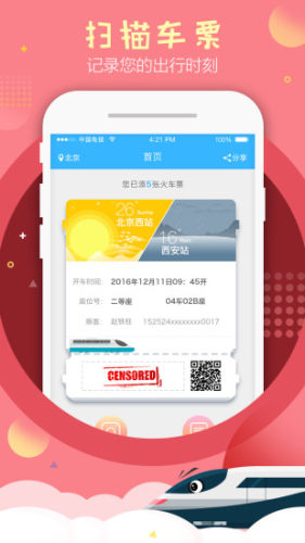 【简单】扫描火车票或者读取12306订票短信即可添加行程