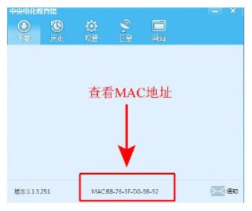 双击桌面的“互联网接收系统程序”,程序启动后如图所示,程序底部居中显示系统注册的MAC地址