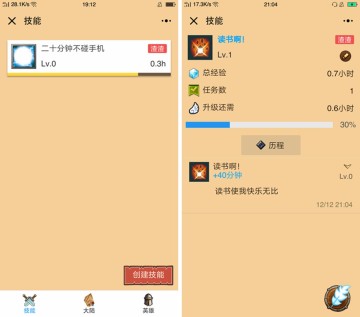 TimeHero微信小程序,是一款时间管理类小程序,大家可以根据自己的个人兴趣爱好,创建自己的技能,每在技能消费时一定的时间,就记录上去,可以达到升级的效果。