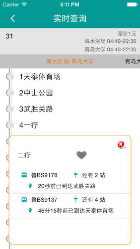 -实时功能是输入每条公交线路编号,都会呈现公交车站名,在哪个站乘车,公交车到达时间一目了然。