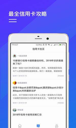 在小白信用卡管家App,您可以获得全新的信用卡资讯,获得全新的用卡攻略,还能和广大信用卡用户一起交流用卡心得,全面提升自己对信用卡的了解!