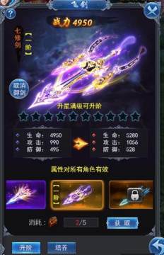 1、飞剑激活需要获取相应的道具,可通过参与各类活动获取;