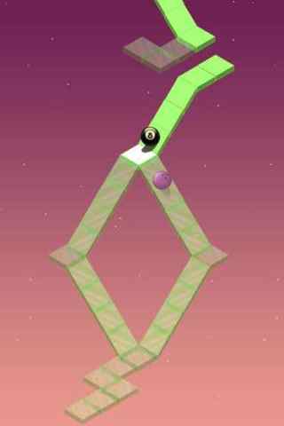 游戏设定虽然很简单玩法也十分简单,但还是存在一定难度的,在戏中玩家只需要通过点击屏幕空白处,小球即可变换方向,如此设定看起来再简单不过了,但在下落过程中小球可前进的路径都是未知的会随着下落一点点出现,这也十分考验玩家的反应能力。
